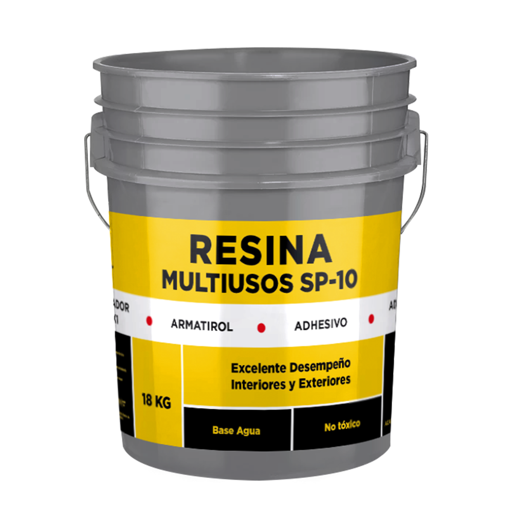Como adhesivo para tirol: Agregue de 2 a 4 kg de RESINA MULTIUSOS SP-10 por cada 20 kg de mezcla preparada, si requiere de mayor adhesividad agregue más RESINA hasta lograr la adhesividad y consistencia deseada. Como promotor para unir concreto nuevo con viejo: En su mezcla agregar de 2 a 3 kg de RESINA por cada 50 kg de cemento.